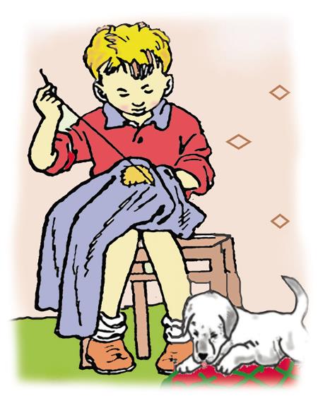 Вставить ниточку в иголку…Без сноровки мало толку.Идёт пятая попытка…Для меня она не пытка!Раз! Попала нитка в цель!Завершилась канитель.Сам штанишки разорвал —Сам все дырки залатал.