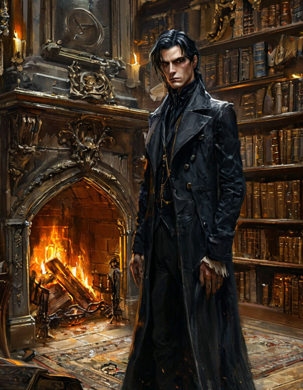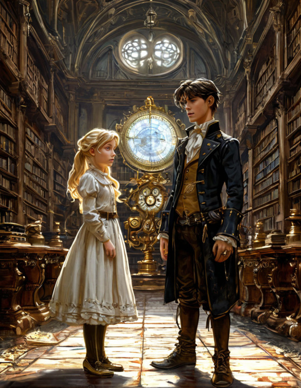 Я невольно отметила множество странных вещей. И первой странностью стали огромные часы, стрелки которых двигались в противоположном естественному ходу направлении. Их маятник раскачивался с тяжёлым гулким звуком, словно отсчитывал время назад. Старинные канделябры источали слабый дрожащий свет, создавая длинные тени на полу. В воздухе витал затхлый запах старой бумаги и пыли.