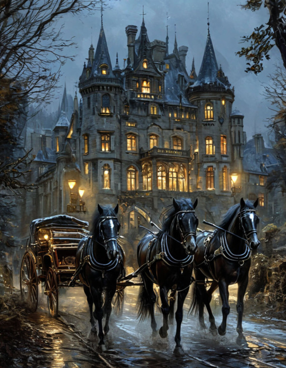 Ночь окутала замок плотной завесой тьмы, и лишь слабый лунный свет проникал сквозь узкие окна, отбрасывая длинные тени на стены.