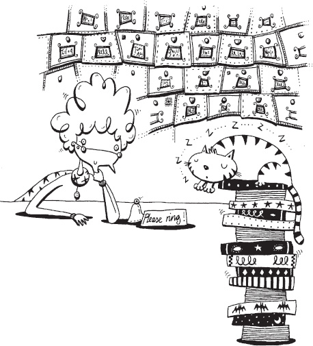 Miss Strega tapped her nose and smiled even more. Her chin, Jessica could now see, was very, very long. “One of the cats reminded me,” she said mysteriously. With that, she came out from behind the counter and steered Jessica back on to the High Street.