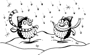 “Help me, Blue!” he pleaded as Oo-Chi sat on him and Ku-Chi rubbed snow in his head feathers.