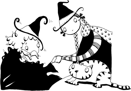 Jessica sat cross-legged on the counter and laid her broom carefully beside her. Berkeley fluttered down from the ceiling and perched on her shoulder. Felicity jumped up on to the counter too, arched her back, stretched, circled three times and finally settled down on Jessica’s lap, purring loudly.