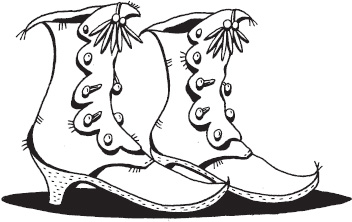 They were purple boots with pearly buttons up the side and a tassel at the top and might once have been quite pretty, but they were in a terrible condition. The heels were stumpy and lopsided, the toes were scuffed and scratched, and the tassels had seen better days.