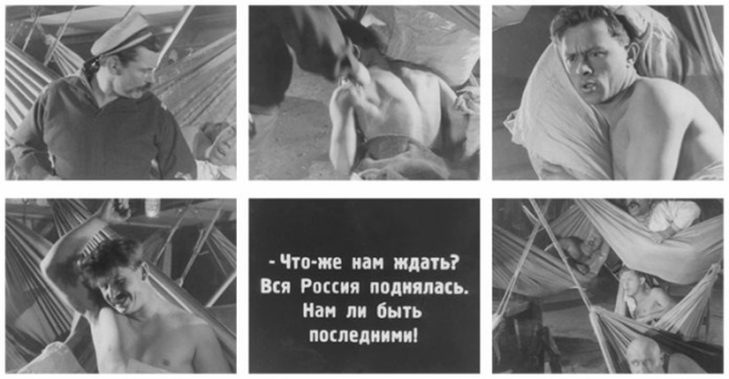 Этот же образ мог определить и фактуру сцены «Пробуждение матросов» – точнее, «Пробуждение протеста». Возможно, именно он преобразил бытовую мотивировку: из-за духоты в кубрике матросы спят обнаженными.