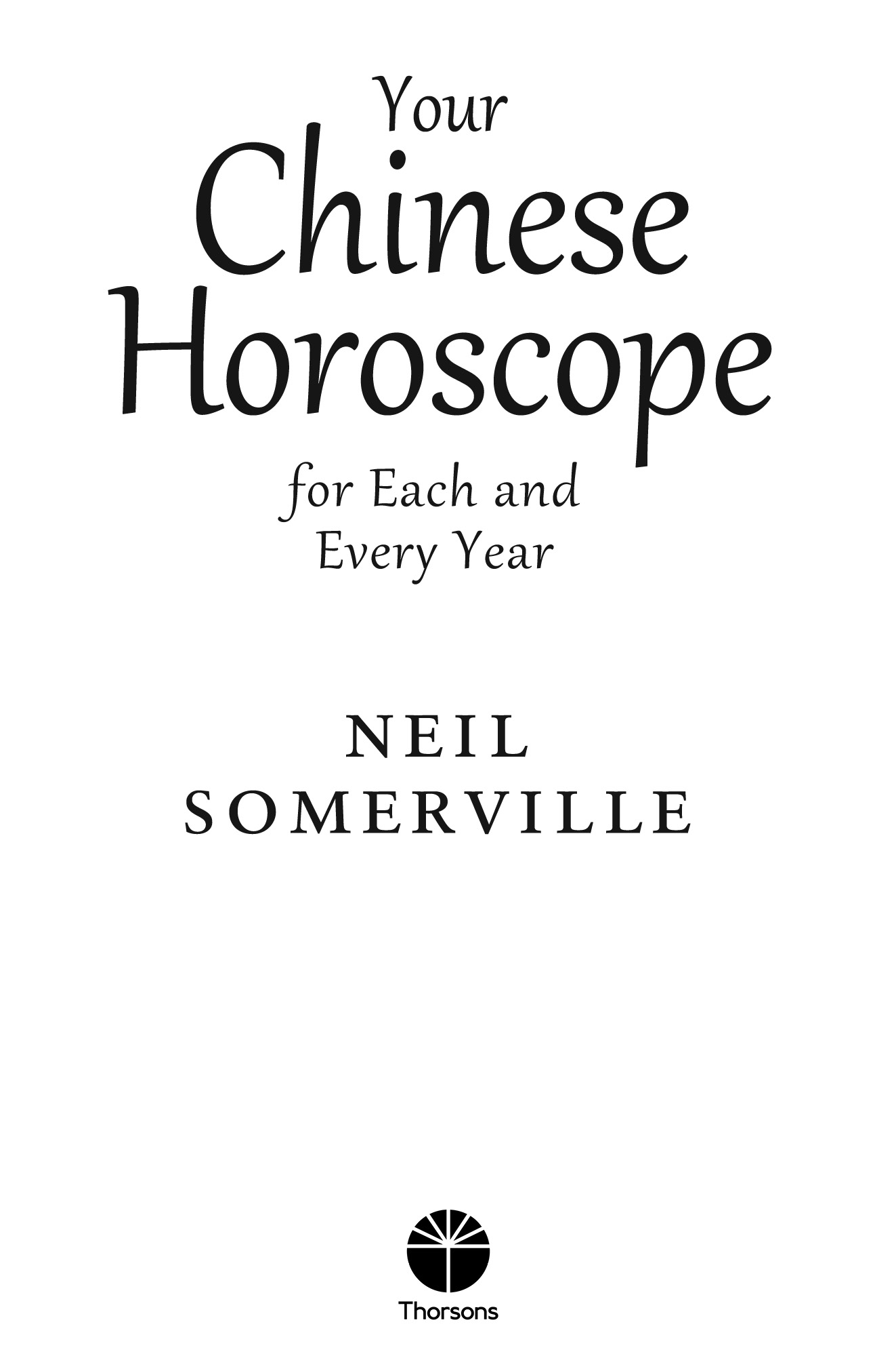 Neil Somerville is one of the most widely read writers in the West on Chinese horoscopes. His 30-year annual series, Your Chinese Horoscope, enjoyed an international following and was translated into many languages. He is also the author of the bestselling books Chinese Love Signs (Thorsons, 2000), Chinese Success Signs (Thorsons, 2001), The Answers (Element, 2004) and Cat Wisdom (Thorsons, 2017).