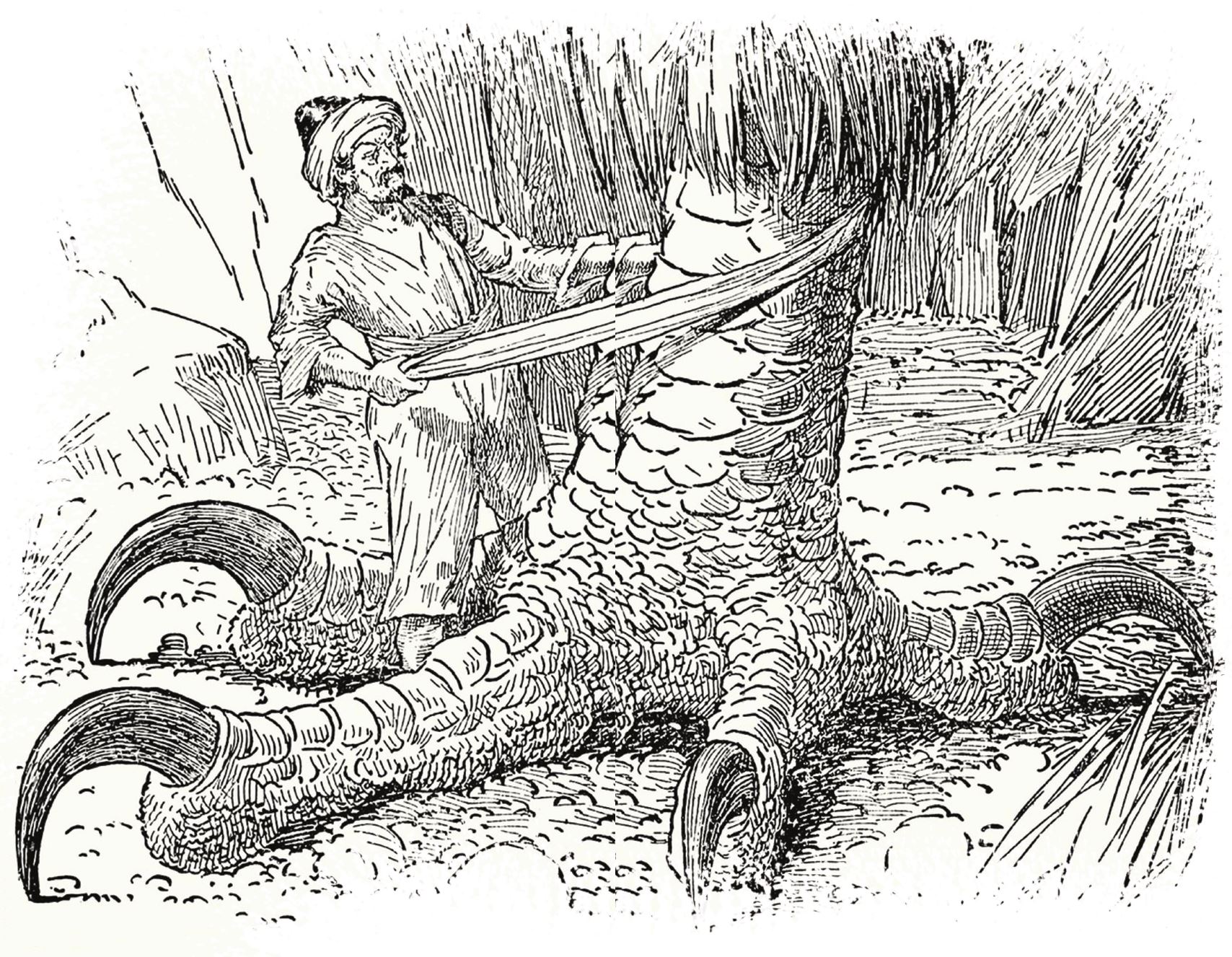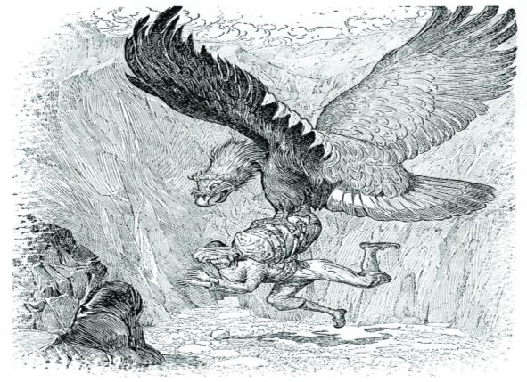 Tıpkı cin çarpmış gibi deliye dönmüştüm. Ayağa kalktım ve bütün adayı dolaştım. Daha sonra büyük bir ağaca tırmandım ve etrafımı gözetlemeye başladım. Fakat gökyüzü, deniz, ağaçlar, kuşlar ve alabildiğine uzanan sahil dışında hiçbir şey görmedim. Bir süre sonra meraklı bakışlarım, adanın içlerinde bir yerlerde bulunan büyük, beyaz bir şeye takıldı. Ağaçtan indim ve o şeyi daha yakından görebilmek için yürümeye başladım. Yanına yaklaştığımda o şeyin, göklere doğru yükselen geniş çaplı bir kubbe olduğunu anladım. Etrafında yürüdüm. Kapısı yoktu. Onun için üstüne çıkmaya karar verdimse de öylesine kaygan ve pürüzsüzdü ki bunu başaramadım. Bunun üzerine bir yere işaret koydum ve kubbenin etrafında dolaştım ki çevresini ölçebileyim. İşaret koyduğum yere geri dönünceye kadar tam beş yüz adım attım. Akşam oluyordu ve benim hâlâ kalacak bir yerim yoktu. Bu kubbede kalmanın iyi bir fikir olduğunu düşündüm ve içeri girmenin yolları üzerine kafa yormaya başladım. Sonra bir anda güneş saklandı ve hava karardı. Bir bulutun güneşin önünü kapattığını düşündüm fakat yaz günü bu imkânsızdı. Büyük bir merakla kafamı kaldırdığımda bulut sandığım şeyin devasa bir kuş olduğunu gördüm. Akılalmaz derecede büyük kanatlarıyla gökteki güneşi gölgeleyen kocaman bir kuş…