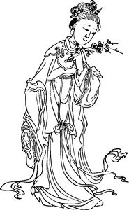 Служанка провела гостя во двор, оградой которому служили сосны и бамбук. У входа в дом росли желтые хризантемы. Красные листья кленов затеняли крышу и перила. На террасе сидела освещенная лунными лучами красавица с лютней на коленях. Она была одета в блестящую кофту и легкую юбку. Ян замедлил шаги и остановился, когда хозяйка встала и пошла навстречу гостю. Приветливо улыбнувшись, она зажгла светильник и пригласила юношу подняться на террасу.