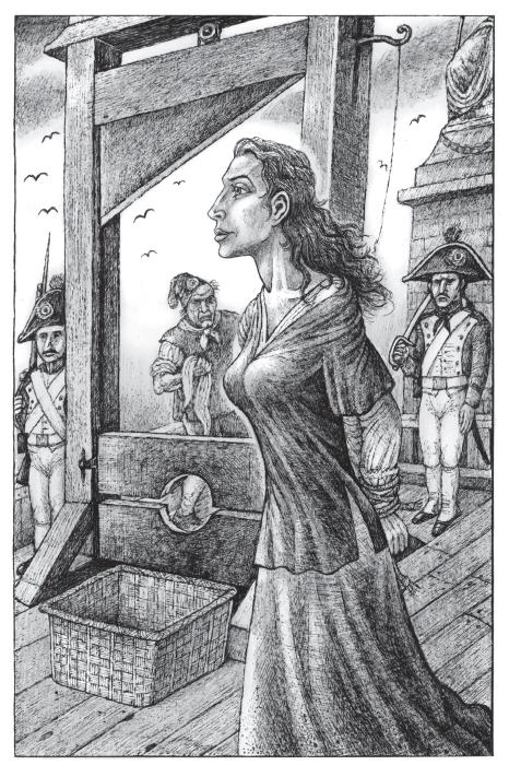 Молния сверкала, шел дождь, гремел гром, но ничто не могло разогнать любопытную толпу. Набережная, мосты, площади были запружены народом – гул толпы почти покрывал гул неба. Женщины, которых называли энергичной кличкой «лакомка гильотины», преследовали ее проклятиями, и гул ругательств доносился до меня, словно гул водопада.