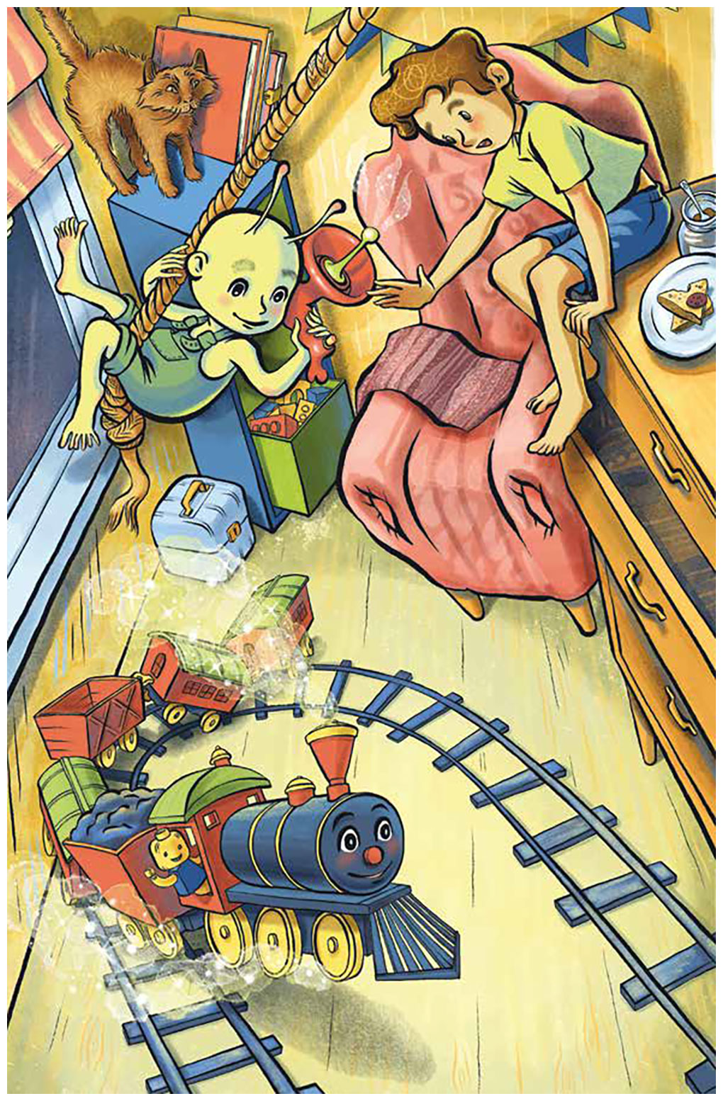 Сначала они испытывали ускоритель на игрушечной железной дороге, тостере и стиральной машинке. Тостер и машинка тоже были игрушечными. Коля, конечно, спросил маму, нельзя ли провести испытания с настоящей техникой, но мама почему-то не разрешила и даже переставила тостер на самую дальнюю полку.