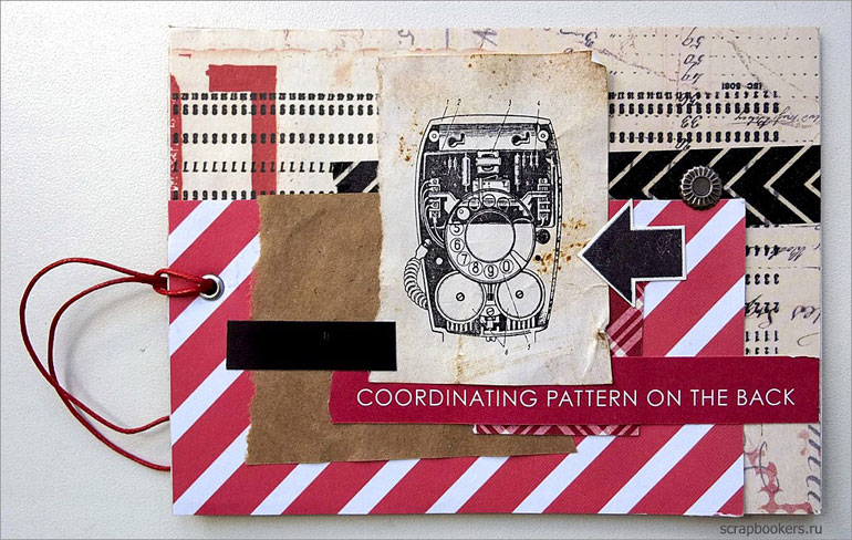 Она небольшая, примерно с половину обычной открытки, но очень плотная, на основе из толстого картона. Достаточно удобная, чтобы положить в карман рубашки, и в то же время не слишком маленькая, чтобы не потерять ее и не спутать с визиткой. Фон в красно-белую диагональную полоску сразу привлекает к себе внимание, таким помечают на дорогах сложные повороты и участки, где ведется ремонт. Самая крупная деталь карточки – пожелтевший листок с рисунком старого телефонного аппарата. Ниже – надпись: «coordinating pattern on the back». Эту фразу всегда пишут на двусторонней скрап-бумаге, но почему она оказалась здесь, можно только ломать голову. С обратной стороны карточки есть кармашек. Я достаю из него тэг[2], привязанный красной вощеной ниткой, откапываю в том же внешнем кармане рюкзака карандаш и быстро пишу на тэге: «У меня открытка скрапбукера-самоубийцы. Что делать?» Последнюю фразу можно было и не добавлять. Ах да, чуть не забыла самое главное! Я поспешно дописываю адрес, который вижу перед собой: «Улица Пирогова, 29. На скамейке у первого подъезда». Под телефоном есть небольшое черное поле. Я стираю ногтем этот защитный слой, как на билете мгновенной лотереи, и под ним проступают красные буквы: «S.O.S.».
