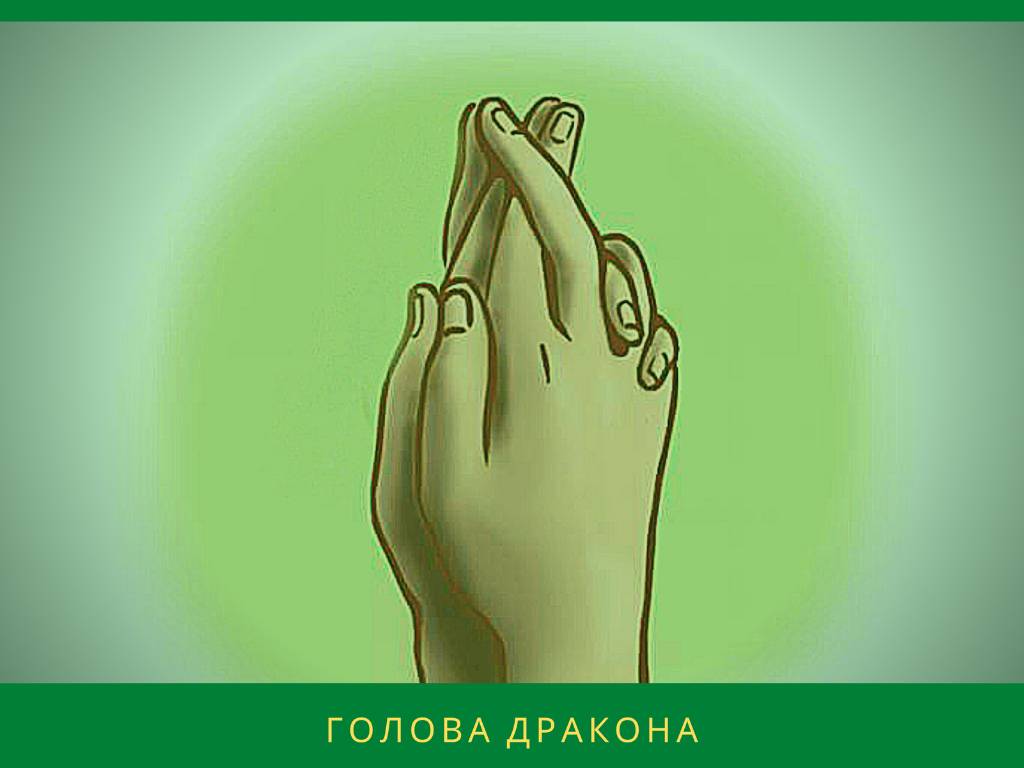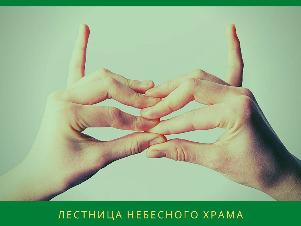 Средним пальцем обхватывается и прижимается фаланга указательного пальца на обеих руках. Затем необходимо соединить руки. При этом большие пальцы должны соединиться между собой именно боковыми поверхностями. Все остальные пальцы перекрещиваются друг с другом.