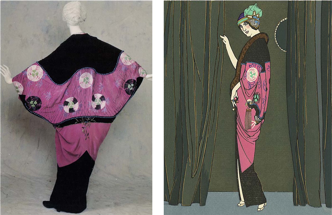 Оперное манто, созданное Жанной Пакен, из коллекции Музея исторического общества Западного Резерва (слева), было нарисовано Ж. Гозом для La Gazette du Bon Ton в 1912 году (справа).