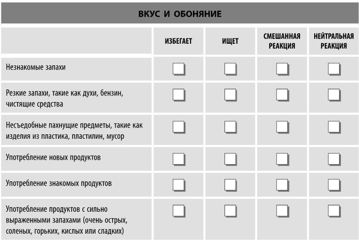 • Стремится ощущать (или не выносит) определенные запахи или вкусы.