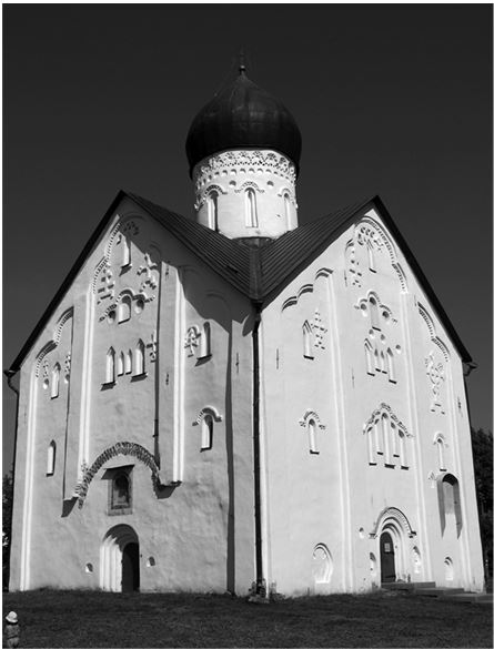 Рис. 2.2. Церковь Спаса Преображения на Ильине в Новгороде (1374) – превосходный по стилю однокупольный храм, в который делали пожертвования богатые торговцы со всего города. В нем сохранились остатки фресок Феофана Грека, выполненные в соответствии с учением исихазма. Фото Джека Коллманна