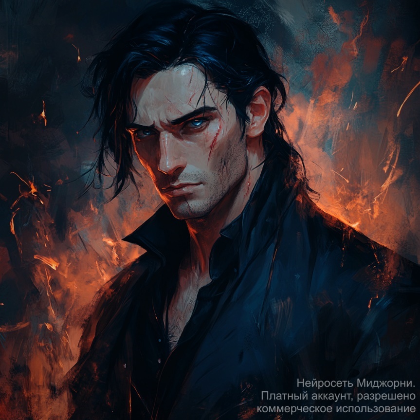 Глаза, глубокие и синие, как бездонный океан, отражали печаль и мудрость, а шрам на щеке – след давнего сражения, который оставил отпечаток не только в физическом плане, но и глубоко в душе. Одеваться предпочитал в тёмную одежду, выбирая за комфорт. Но, надо сказать, что такой облик идеально подчёркивал статную фигуру и придавал образу стиль таинственного незнакомца. Чёрные камуфляжные брюки, плотно облегающие ноги, были аккуратно подпоясаны тёмным ремнём, украшенным защитными символами, которые, казалось, шептали о древней магии и охране. Поверх тёмно-синей футболки он носил длинное пальто, его края развевались на ветру, точно тени самого́ ночного неба.