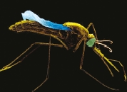 Раскрашенный снимок комара (лат. Anopheles stephensi), полученный с помощью сканирующего электронного микроскопа.