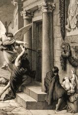 Ангел смерти стучится в дверь во время эпидемии Антониновой чумы в Риме (165–180 гг. н. э.).
