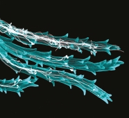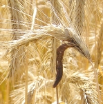 Раскрашенное изображение спорыньи (лат. Claviceps purpurea) на пшенице, полученное с помощью растрового электронного микроскопа.