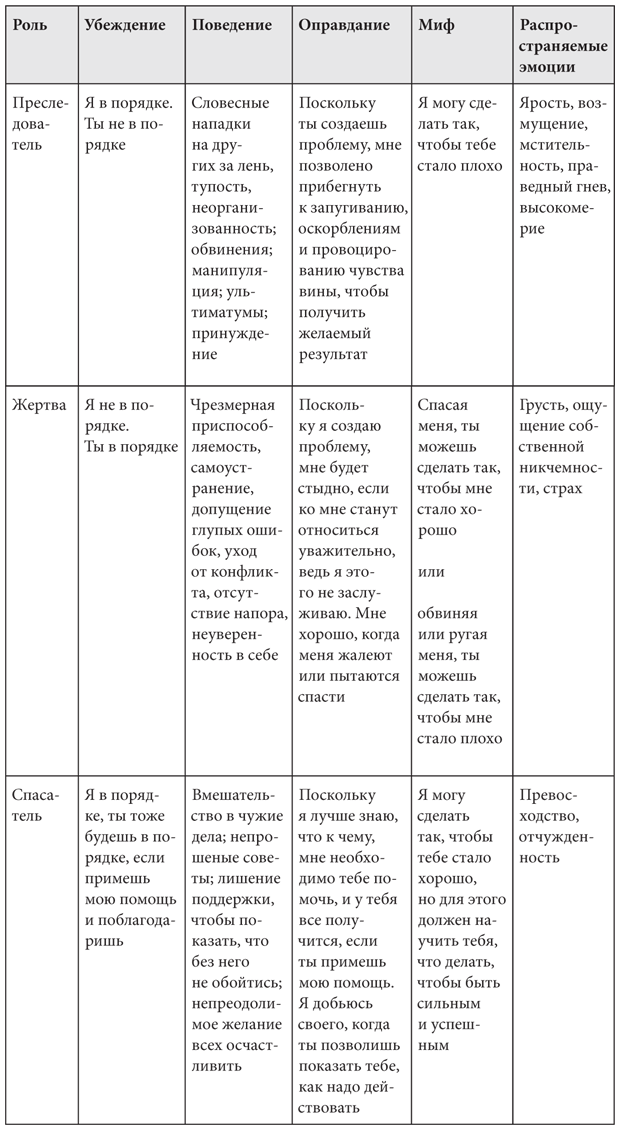Драматические роли, их убеждения, поведение, оправдания, мифы и распространяемые эмоции