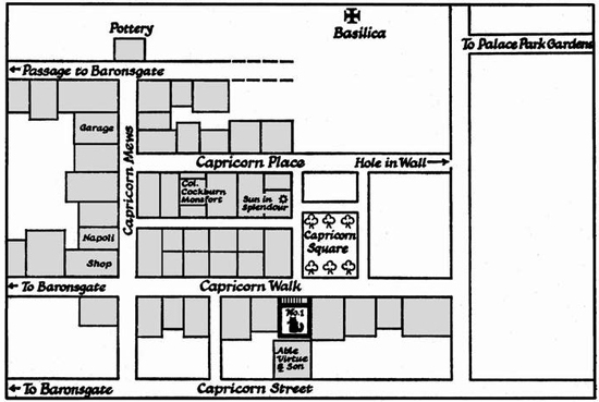 From Baronsgate the western entry into the Capricorns is by an arched passage too low overhead to admit any but pedestrian traffic. It leads into Capricorn Mews and, further along at right angles to the Mews, Capricorn Place. He had passed by it over and over again and would have done so now if it hadn’t been for a small, thin cat.