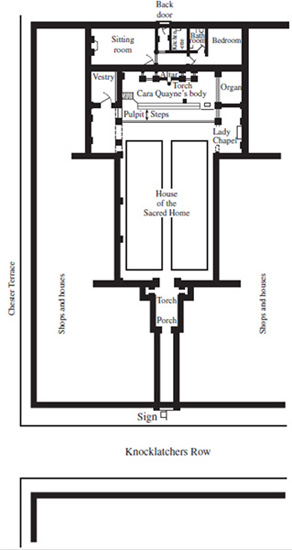 In case the House of the Sacred Flame might be thought to bear a superficial resemblance to any existing church or institution, I hasten to say that if any similarity exists it is purely fortuitous. The House of the Sacred Flame, its officials, and its congregation are all imaginative and exist only in Knocklatchers Row. None, as far as I am aware, has any prototype in any part of the world.