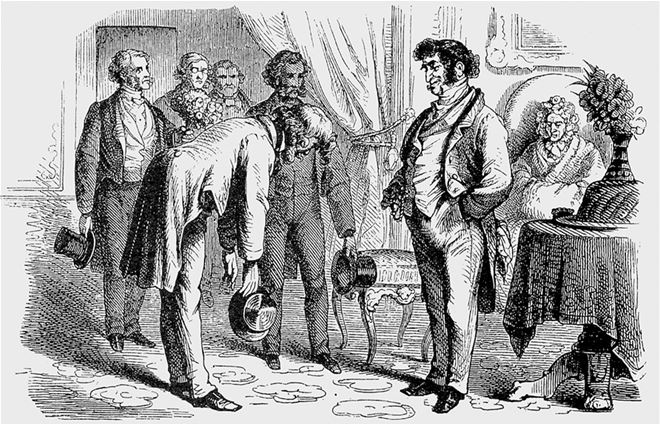 Новому делегату от Пруссии в парламенте восстановленного Германского союза, деятельному и ультраконсервативному юнкеру по имени Отто фон Бисмарк, Амшель казался жалким стариком. Конечно, «в денежном выражении» Ротшильд оставался «самым почтенным» человеком в местном обществе, как писал Бисмарк жене вскоре после приезда во Франкфурт. Но «заберите у всех них деньги и жалованье, и увидите, насколько непримечательны» он и остальные граждане Франкфурта на самом деле. Вновь прибывший во Франкфурт Бисмарк получил от Амшеля приглашение на ужин и ответил в типичной для него отталкивающей манере (Амшель послал приглашение за десять дней до события, дабы убедиться в том, что его примут), написав, что придет, «если будет еще жив». Такой ответ «настолько встревожил» Амшеля, что он пересказывал его всем знакомым: «Почему он пишет «если будет жив», зачем ему умирать, ведь он так молод и крепок!» Дипломат-юнкер, личные средства которого были весьма ограниченными, а жалованье – скудным, придя в гости, испытал изумление, смешанное с отвращением, увидев «обилие серебра, золотые вилки и ложки, свежие персики и виноград, превосходные вина», которыми его угощали на ужине у Амшеля. Он не сдержал презрения, когда старик после еды горделиво хвастал своим любимым садом: «Он мне нравится, потому что он – настоящий старый еврей-махинатор и никем другим не притворяется; к тому же он ортодоксальный иудей и отказывается за ужином притронуться к чему-либо, кроме кошерной еды. «Иоганн, возьмите хлеба для оленей», – приказал он слуге, когда собрался показать мне свой парк, в котором он держит ручных оленей. «Герр барон, это растение обошлось мне в две тысячи гульденов, честно, в две тысячи гульденов наличными. Можете взять его за тысячу; или, если хотите взять его в подарок, мой слуга доставит его вам домой. Я ошень высоко фас ценю, герр барон, вы красивый человек, вы умный человек». Он низкорослый, худой и тщедушный и довольно седой. Самый старший в роду, но он несчастен в своем дворце, бездетный вдовец. Его обкрадывают слуги и презирают офранцуженные и англизированные племянники и племянницы, которые унаследуют его богатство без всякой любви и благодарности»[2].