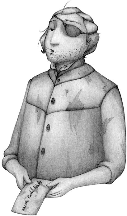 Mrs. Helmsley hushed. It was no reporter. It was a tall man in a greasy jumpsuit with an eye patch covering one of his eyes. The Eye Patch! Or at least, that’s what Archer called him. He’d met the Eye Patch twice before, but all he knew was that the Eye Patch was the captain of a ship, a friend of his grandparents’, and tremendously kind.