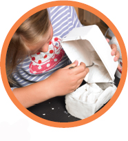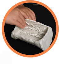 5 Following the packet’s instructions, mix some plaster of Paris with water. Pour the plaster into the mould and leave to set for a few hours. Then carefully lift and peel away the modelling clay to leave your bark cast, ready for display.