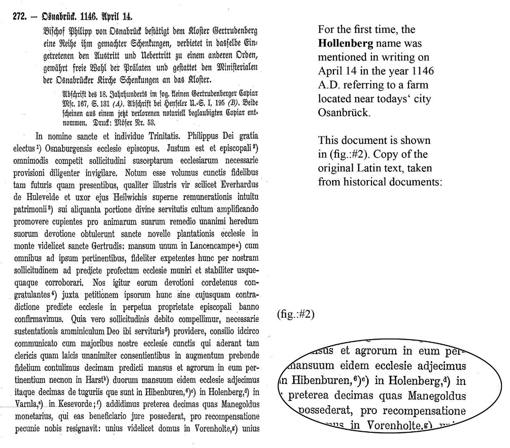 In reviewing the details of the family tree, the reader is going to find, besides the two Hollenberg strings of Niederste-Hollenberg and Oberste-Hollenberg, many other names which are either directly or otherwise connected to the original base of the two estates which, however, started out at one place for the first time mentioned in an old Church document as