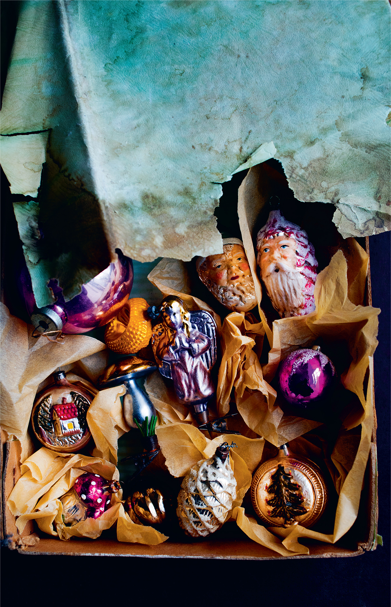 Gingerbread biscuits with icing like melting snow; steaming glasses of ‘glow-wine’; savoury puddings of bread and cheese and a goose with golden skin and a puddle of apple sauce. There are stews of game birds with twigs of thyme and rosemary; fish soups the colour of rust and baked apples frothing at the brim. Winter is the time for marzipan-filled stollen, thick with powdered sugar, pork chops as thick as a plank, and rings of Cumberland sausage sweet with dates and bacon.