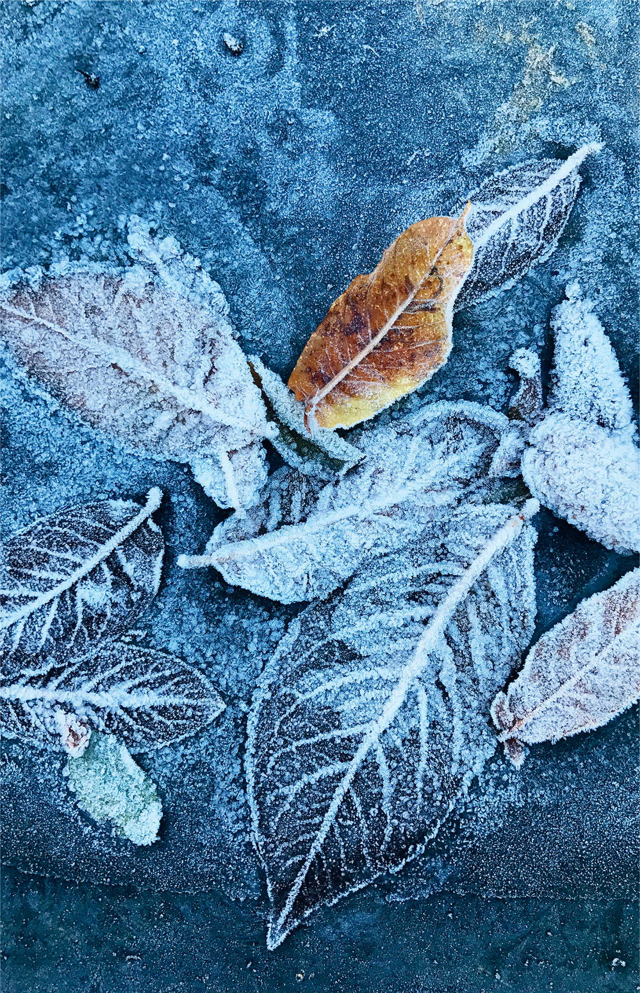 The garden has skeletons – hydrangea, hornbeam and beech – holding their leaves even now. The pale walnut browns are smart and crisp against the green of the high yew hedges. Blue tits feast. Leaves, yellow, grey, black, lie frozen to the garden table, silver with frost. The space is tidy, but beneath the neatness lie worries. Two much-loved trees in the garden require major surgery, a third lost its leaves in the summer. The white jasmines, normally survivors in any garden, have suffered from a mysterious fungus. (This could well be due to their location, a curiously warm, damp courtyard where frost gets no hold, an enclosed space warm enough for pelargoniums to spend their winter unprotected.)