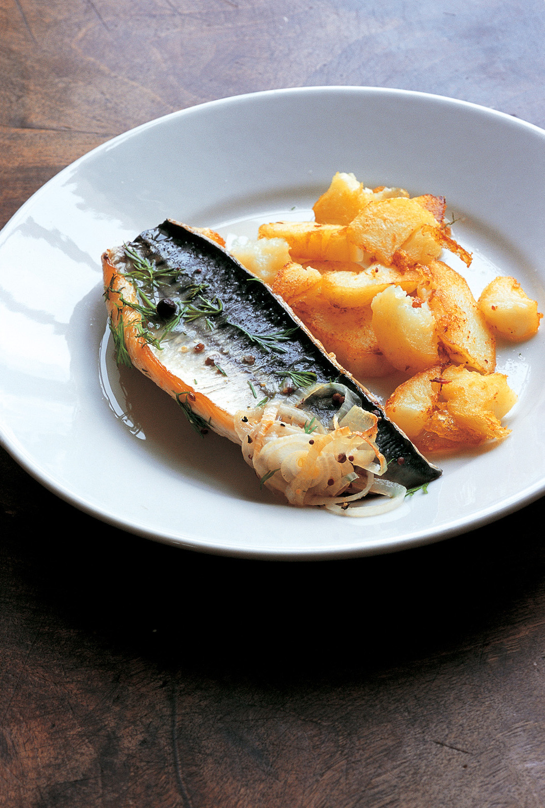 Piquancy is something I value in a fish recipe, especially when that fish is one of the oily varieties, such as tuna, herring or my favourite mackerel. It may sound a little strange but I recommend some sautéed potatoes with this.
