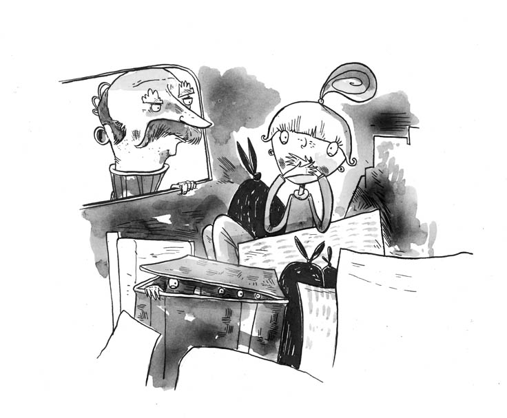 “There’s no bright side if he’s escaped right off this ferry and we never see him again,” said Nat angrily, peeking under a lifeboat cover. “And that’s not really a proper job anyway. You told me that joining a circus is NOT a proper job.”