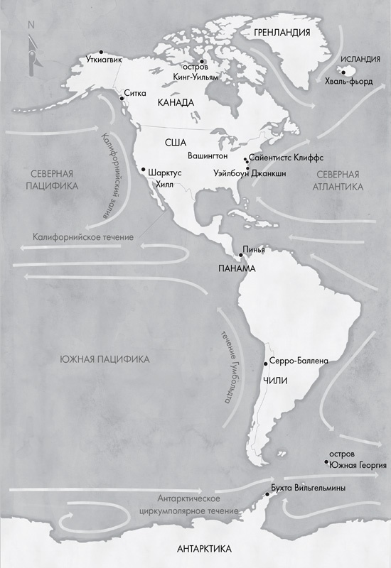 В этой книге нет полного обзора всех видов китов – их слишком много, пришлось бы написать целую энциклопедию. Здесь представлена выборка, своего рода путевой дневник, повествующий о погоне за китами, как живыми, так и вымершими. Я описываю свои приключения – от Антарктиды до пустынь в Чили, от тропических берегов Панамы до прибрежных вод Исландии и Аляски. Я использовал самые разнообразные приборы и инструменты для изучения китов: маячки на присосках, устанавливаемые на спину кита; ножи, чтобы рассекать кожу и отделять жир от мышц и нервов; молотки, чтобы отскребать и откалывать камень, под которым прячется блестящая окаменелая кость.