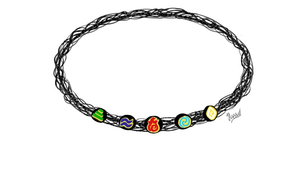 В руках он держал диадему, замыкающуюся в кольцо: она была металлической и блестящей, с замысловатыми узорами вдоль всей длины, пять символов привлекали внимание разными цветами: зелёным, тёмно-синим, красным, небесно-голубым и кипенно-белым.