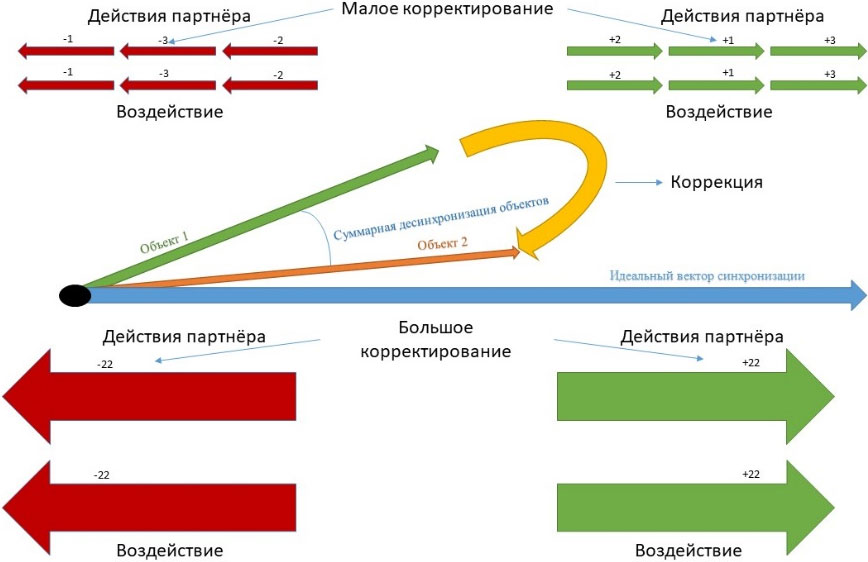 Для того чтобы на что-то воздействовать, необходимо понять конечную цель этого воздействия, в данном случае это регуляция поведения объекта с целью улучшения качества отношений. Дистанции, на которых вы находитесь и к которым движетесь, могут быть любыми, суть этого принципа останется неизменной, заключается этот метод в активном перемещении дистанции за короткий промежуток времени, о чём идёт речь, речь идёт о положительном и отрицательном подкреплении объекта воздействия, исходя из его действий, т. е., когда объект совершает правильные действия в отношениях (под правильными действиями понимаются действия, приводящие к увеличению качества отношений), вы сокращаете дистанцию, тем самым увеличивая доверие, когда объект совершает неверные действия – отдаляетесь, уменьшая доверие. Подобные манёвры приводят к пониманию объекта правильных и неправильных действий, тем самым мы формируем верный вектор движения своего партнёра в этих отношениях. Как и везде, важна мера воздействия, ибо слишком сильное отдаление является неадекватной реакцией, и партнёр скорее не будет думать, что он сделал не так, а будет думать, как бы больше с этим человеком не связываться, в то же время и слишком сильное положительное воздействие вредно, потому как вы нарушаете баланс воздействий, из-за чего партнёр будет строить слишком большие иллюзии в области ваших отношений. К примеру, вы находитесь на средней дистанции, партнёр сделал правильное действие, вы в этот момент сближаетесь с ним на короткое время на личную дистанцию и находитесь в ней слишком долго, соответственно, партнёр настроит иллюзий относительно дистанции, именно поэтому так важна мера везде, ваше воздействие должно быть едва заметным, такой небольшой неприятностью или небольшой радостью для партнёра, именно при небольших дозах формируется микровыравнивание вектора качества ваших отношений, а так как это слагаемые доминанты, много маленьких дадут большой эффект во времени. Конечно, иногда нужны и серьёзные дозы воздействия, как вы можете догадаться, это необходимо при больших отклонениях в движении векторов или при больших сближениях, таким образом, если для вас важны эти отношения, хотя бы имеется вероятность их сохранить, также никогда нельзя забывать, из-за чего формируется вектор ошибки или, иначе говоря, из-за чего происходит десинхронизация – возможно, вес ваших ошибок значительно выше веса ошибок вашего партнёра, а вы пытаетесь корректировать в большей мере его, нежели себя, для того чтобы как-то нивелировать иллюзию понимания, поинтересуйтесь чужим мнением относительно ситуации, и тогда перед вами откроются новые факты, что скорректирует ваши действия. То же касается большого положительно подкрепления, когда ваш партнёр совершил «подвиг», и это существенно сблизило вас с ним, конечно, он заслужил большого подкрепления, как вы видите, всё дело в мере воздействия.