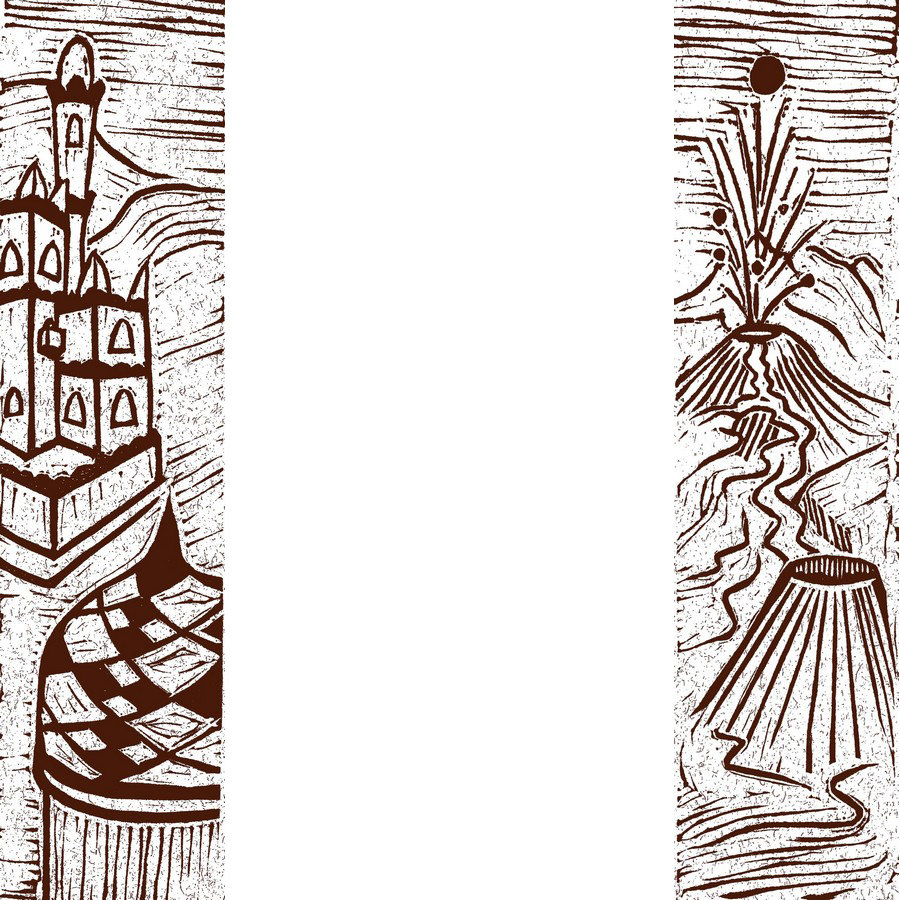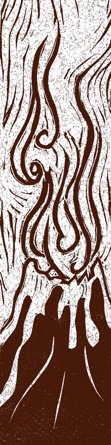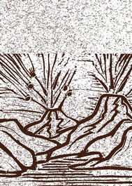 Восточный Луч занимали народы Огня – прямые потомки древних Пиросов. Вечно горевшие вулканы образовывали центр континента. В их жерлах и плавали постоянно менявшиеся огненные существа. Время от времени им надоедало общество друг друга, и тогда они с рыком и ревом вырывались наружу, растекались повсюду, сжигая всё, к чему прикасались. Когда их пыл угасал, они застывали, постепенно превращаясь в лавовых Терросов. Эти каменные существа уже отличались от своих далеких предков. Горячая лава продолжала течь под твердым покровом, позволяя им быстро и свободно двигаться по земле. Они уже не боялись расколоться на части и восхищались тем, что могут удерживать одну форму тела. Однако древнее стремление к изменениям не давало им покоя, и они начинали экспериментировать с пространством вокруг себя. С огненной страстью лепили мастера скульптуры из остывающей лавы и возводили гигантские дворцы, выжигали узоры и выплавляли драгоценности.