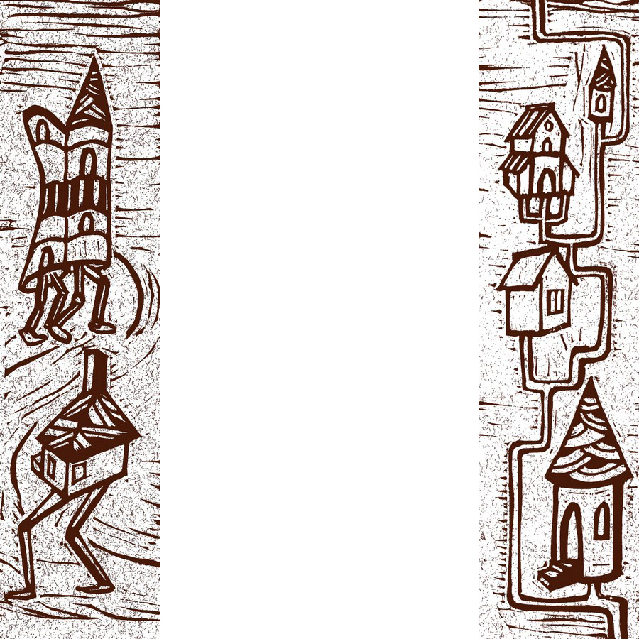 Причудливые строения из дерева, металла и камня обладали собственным характером, росли и развивались – в них появлялись новые комнаты, балконы и пристройки. Когда дому надоедало стоять на одном месте, он поднимался, разминал стальные сваи и трусцой перебегал на другую сторону улицы. При этом жители внутри ощущали только лёгкое покачивание, будто переплывая спокойную реку. Найдя себе новое расположение, дом крутился на месте, утаптывая площадку, откапывал нужные коммуникации и с довольным хрустом усаживался на землю. Жителей такие перемещения не всегда устраивали, но с домом лучше было не спорить, иначе он мог и все дверные проёмы убрать в комнатах. Впрочем, зданиям любовь к путешествиям прощали, потому что в живом доме всё подчинялось мысли хозяев. Чтобы переместить стену, стоило только коснуться её рукой – она сразу переезжала на новое место или превращалась в ряд колонн. Мебель в живых домах обычно не покупали – стулья, столы и шкафы обычно вырастали сами там, где их хотели увидеть. Весь интерьер менял цвета и покрывался узорами под настроение жильцов. Инженеры, переселившиеся в Град с Западного Луча, создавали коммуникации в живых домах – искусно построенные системы отопления и водоснабжения выдерживали внезапные путешествия зданий. Котлы продолжали пыхтеть в подвалах, трубы гнулись, но не ломались. Правда, пришлось договариваться с домовыми, чтобы те подключали перебегающие с места на место особняки обратно к городской сети. Так появились домовые службы. Воры обходили такие дома стороной – говорили, лучше сунуться в центральный лес, чем пытаться что-то выкрасть из здания, которое может тебя тут же съесть. Такое жилище подходило тем, кто был готов ухаживать за своим обиталищем и даже общаться с ним. В самых развитых и благополучных домах появлялись статуи, которые исполняли роль прислуги и занимались разными делами по хозяйству. Распространились и городские легенды о хищных хижинах и кровавых особняках – одичавших домах, которые перемещались по всему континенту, заманивали в себя путников, а потом жестоко расправлялись с ними.
