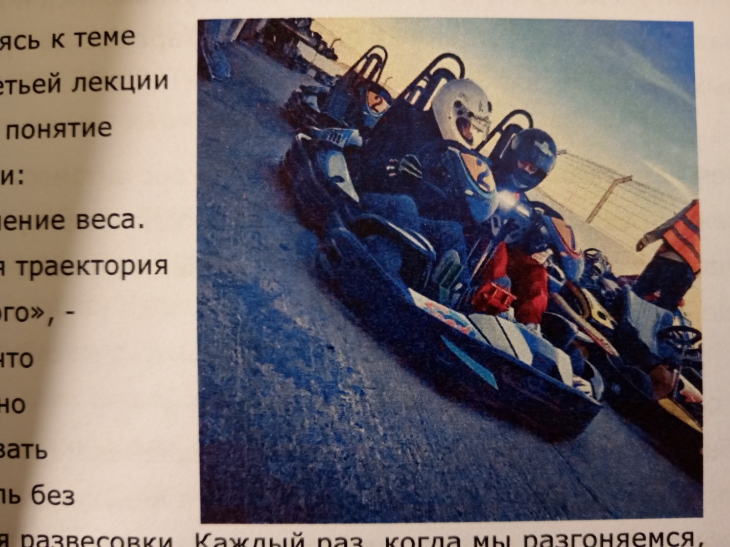 – Итак, теперь мы знаем, что в зависимости о того, ускоряемся мы, тормозим или преодолеваем тот или иной вираж, – вес нашего автомобиля трансформируется в ту или иную сторону.