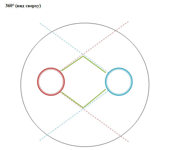 Таких примеров можно приводить сотни. Причины разные, принцип один. Всё дело в том, что каждая противостоящая сторона не может (или не хочет) видеть всю картину целиком. И вот почему. Представьте себе двух людей, участвующих в споре (конфликте). Представили? Как они стоят по отношению друг к другу? Зачастую они стоят в агрессивных позах лицом друг к другу. Что при этом видит каждый участник? Его кругозор сконцентрирован на лице соперника и ещё немного по сторонам. Таким образом, если окружающая ситуация представляет собой окружность в 360°, то каждому из участников виден максимум участок в 120°. И каждому из участников разные участки – у них пересечения лишь в центре. Схематически это выглядит следующим образом.