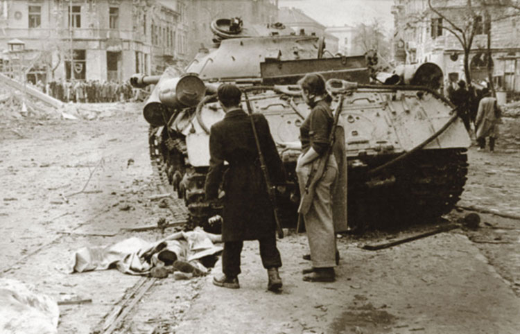 Поражает, как скоро советские танки оказались на улицах Будапешта. Как будто заранее готовились, только ждали приказа. Это наводит на серьезные размышления и дает возможность сделать вполне определенные выводы. Да, готовились заранее. Об этом подробно говорится в Докладе специального комитета ООН по «Венгерскому вопросу». За пару дней до решения о вводе войск уже шла передислокация. Так, 21–22 октября были отмечены военные приготовления на границе Венгрии с Румынией, к которой подтянулась советская техника, то же и на границе с СССР, где были наведены понтонные переправы и сосредоточились войска. Но от границ до столицы далековато. Ближайшие же места дислокации советской бронетехники находились в 70 километрах от Будапешта. Совершить за пару часов марш-бросок и оказаться в центре города им было вполне под силу[435]. Этих войск было недостаточно, но их неожиданное и быстрое появление произвело эффект, хотя совершенно иной по сравнению с ожидаемым. Входящая ночью бронетехника брала под контроль мосты в Будапеште и важнейшие объекты. Танки входили в город с востока и запада, и уже в 6 утра одна из колонн советских машин открыла огонь. Примерно в то же время и колонна, входящая с востока, также открыла огонь[436].