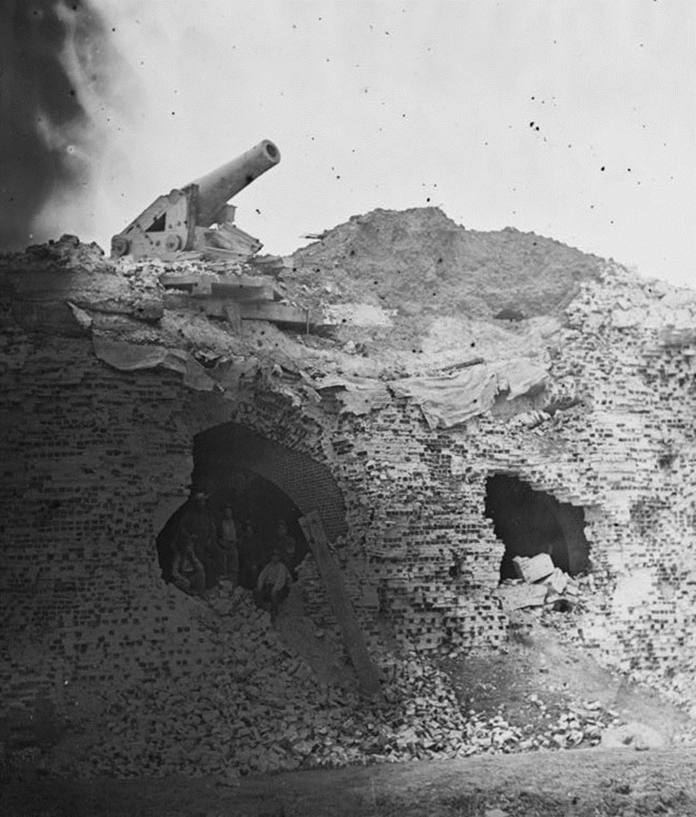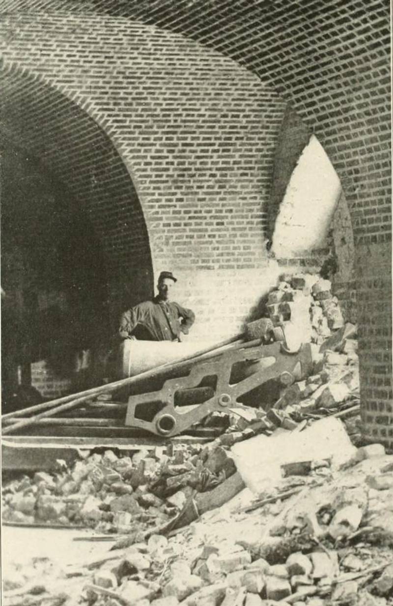 Повреждения форта Пуласки, отбитого силами севера 10 – 11 апреля 1862 года у конфедератов. Штат Джорджия