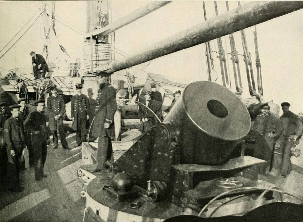 330-мм мортира на палубе шхуны. Бои под Новым Орлеаном 18- 28 апреля 1862 года. Штат Луизиана. Победа США
