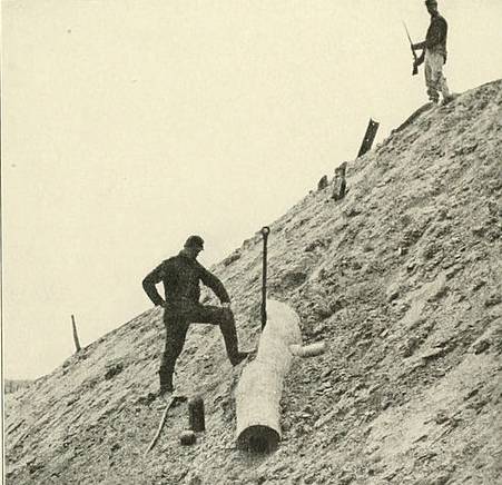батарея № 4 сил Севера. Та же осада Йорктауна. На фотографии видно, насколько толстыми ещё приходилось делать стенки возросших мощностью мортир, чтобы ещё довольно скромный по качеству металл не треснул…
