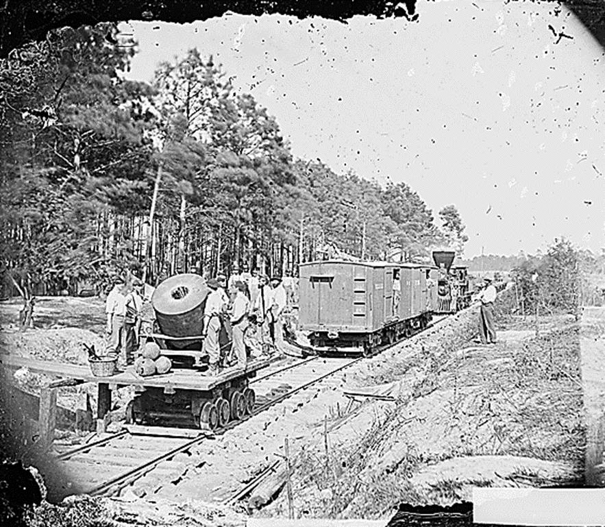 Гражданская война в США стала первым конфликтом, где достаточно «массово» применили бронепоезда. Первым установил артиллерию на платформу командир 19-го Иллинойсского волонтёрского полка полковник Джон Бэзил Турчин (ранее полковник Русской Императорской армии Иван Васильевич Турчанинов). На фото- бронепоезд южан с мортирой. Штат Вирджиния. По фото видно, насколько бронепоезда тогда были скромнее в размерах, нежели лет через сто