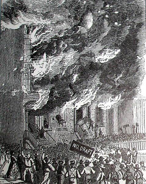 На этом изображении мятежники пытаются взять одно из зданий в Нью-Йорке