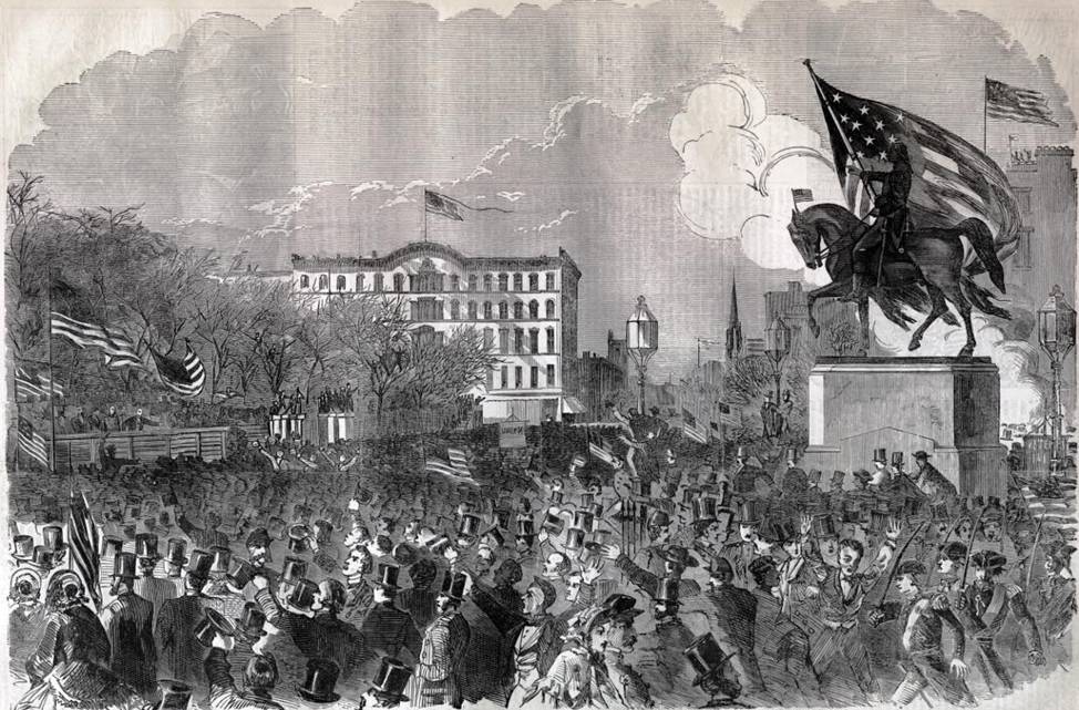 Изображение митинга в поддержку декларации Линкольна о наборе добровольцев 20 апреля 1861 года
