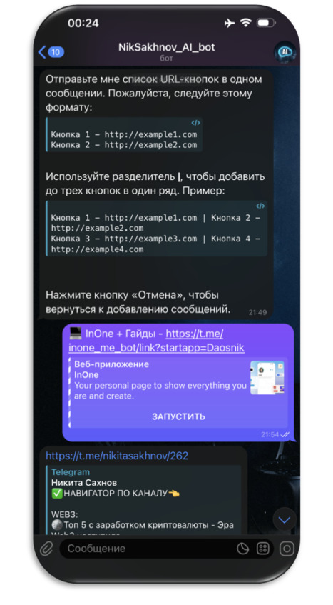 Теперь вы можете создать приложение куда соберете необходимые ссылки, информацию или что нужно именно под вас. Как добавить своё приложение кнопкой в канал InOne вы уже знайте из описанного этапа выше. Теперь разберем как создать свой InOne.