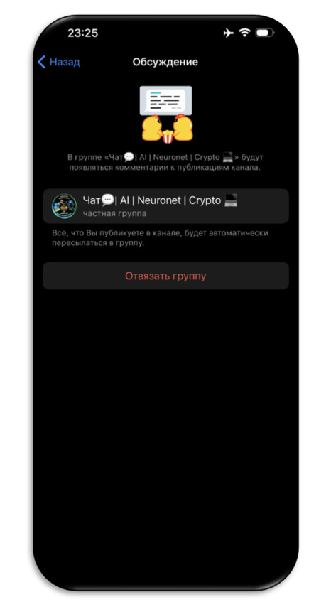Теперь любые комментарии к публикациям ваших постов будут сразу отображаться в чате вашего канала, и сами новые публикации также будут дублироваться участникам чата.