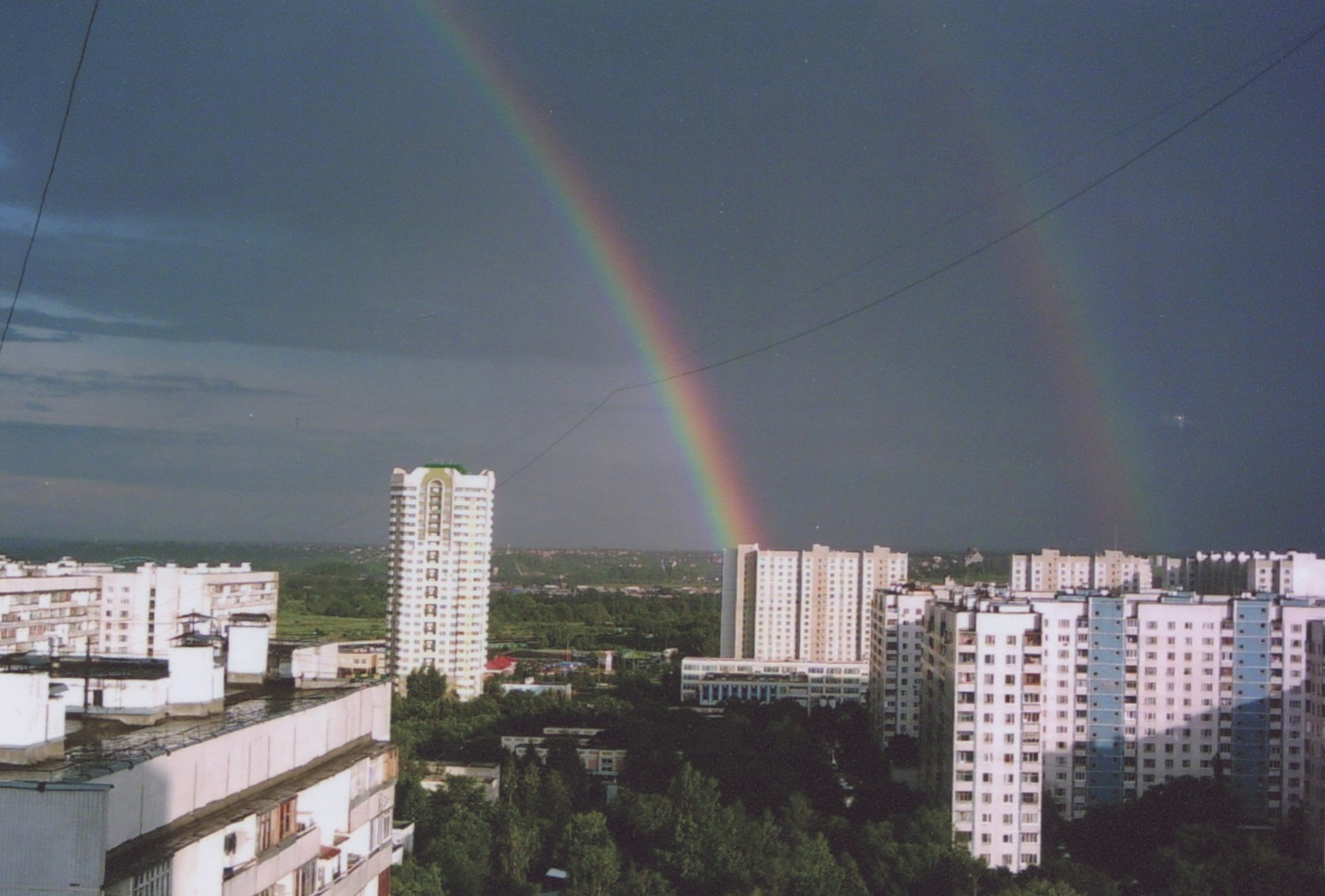 Когда гроза, в провода бьёт молния и они шипят. Это страшно. Из окна я вижу горизонт, иногда радугу, салют. В чистом голубом небе, иногда, можно увидеть прозрачно – белый самолет. Он летит очень высоко, за ним нет белой полосы. Он маленький, маленький, а на самом деле это многотонная машина. Очень завораживает.